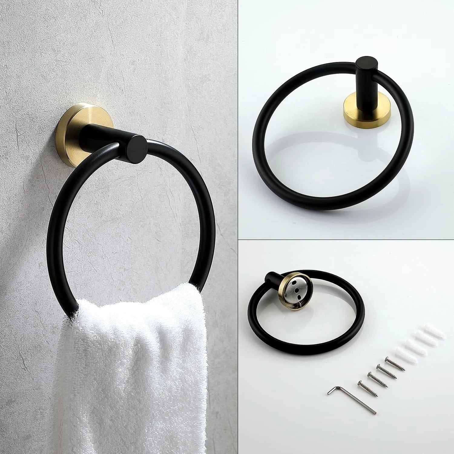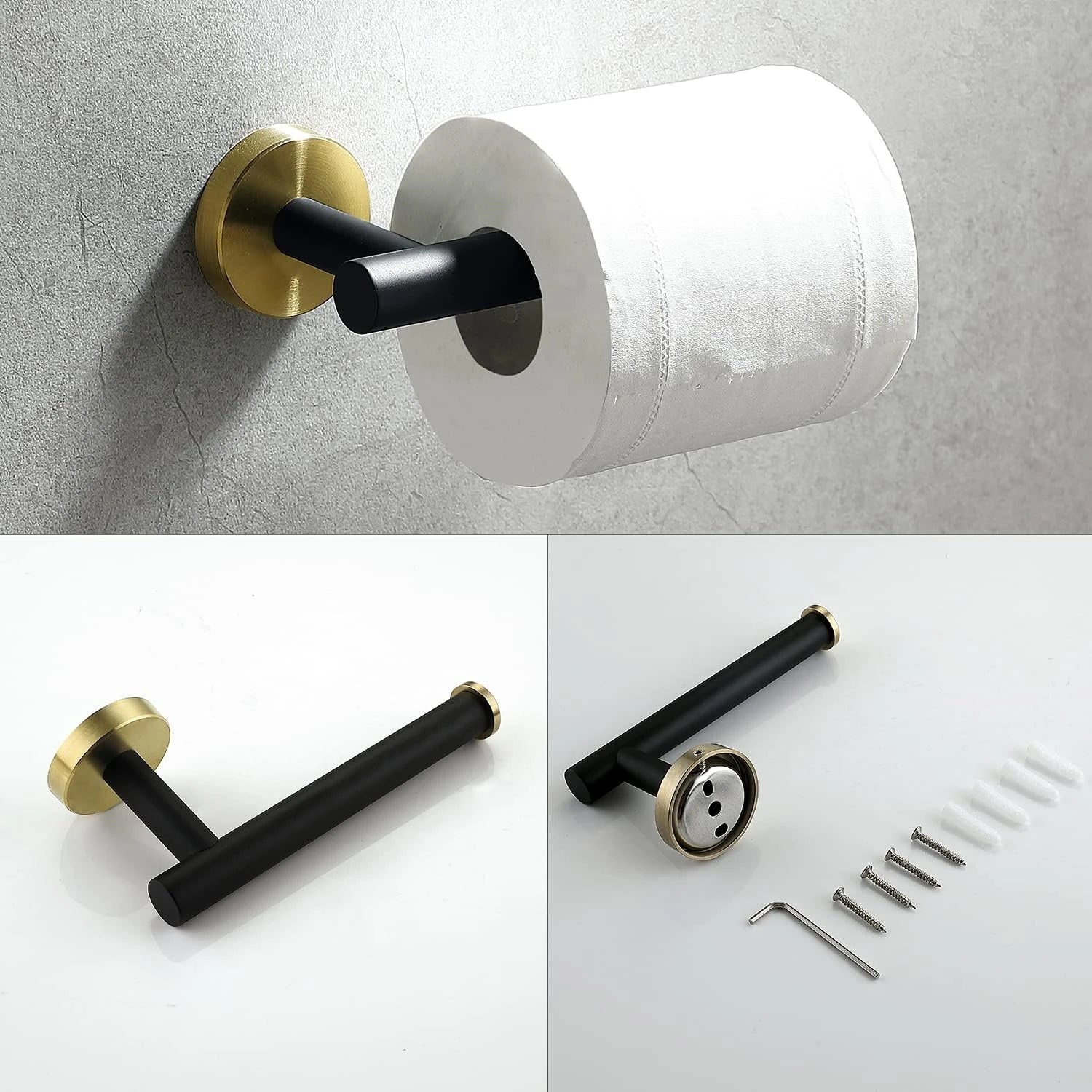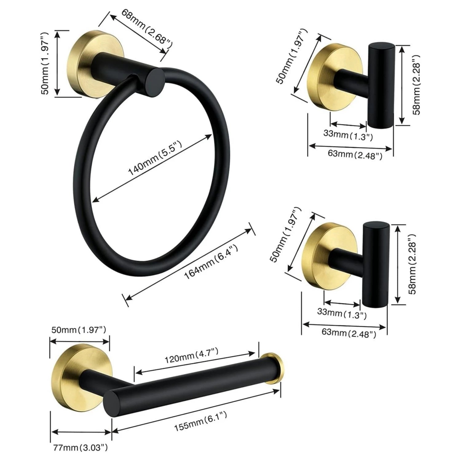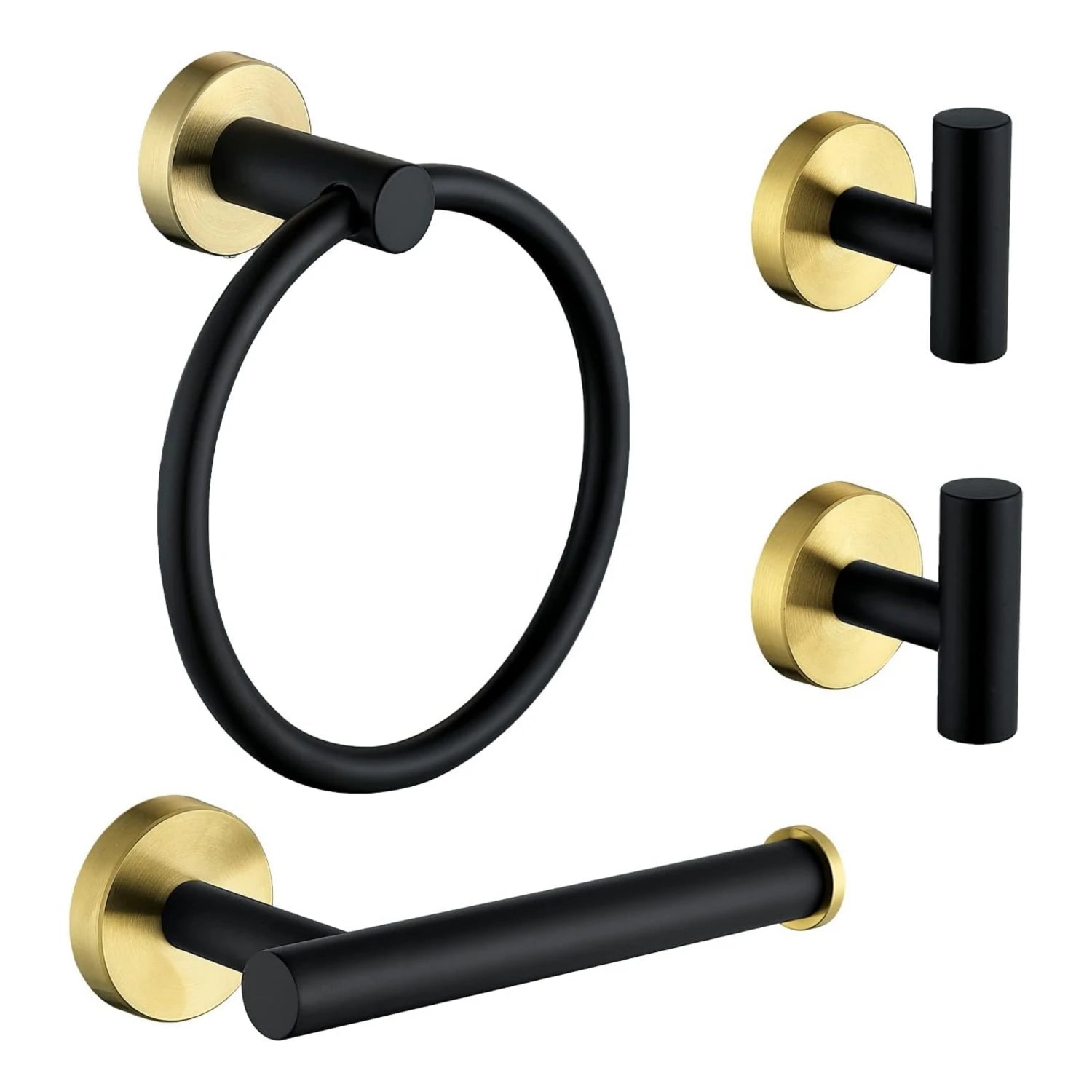 סט אביזרי אמבטיה ממתכת נירוסטה בעיצוב מט בעור שחור וזהב מוברש | 4 חלקים